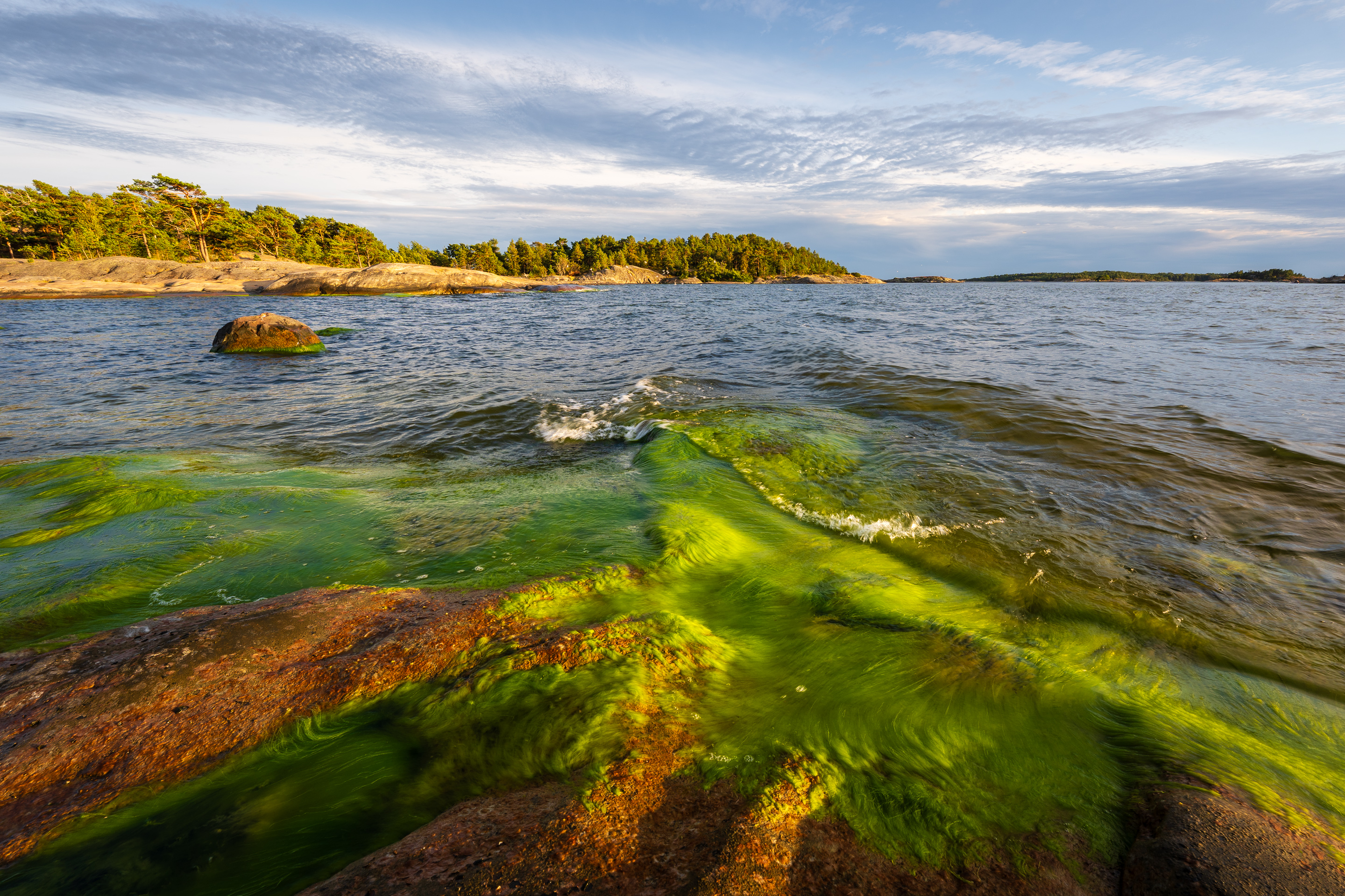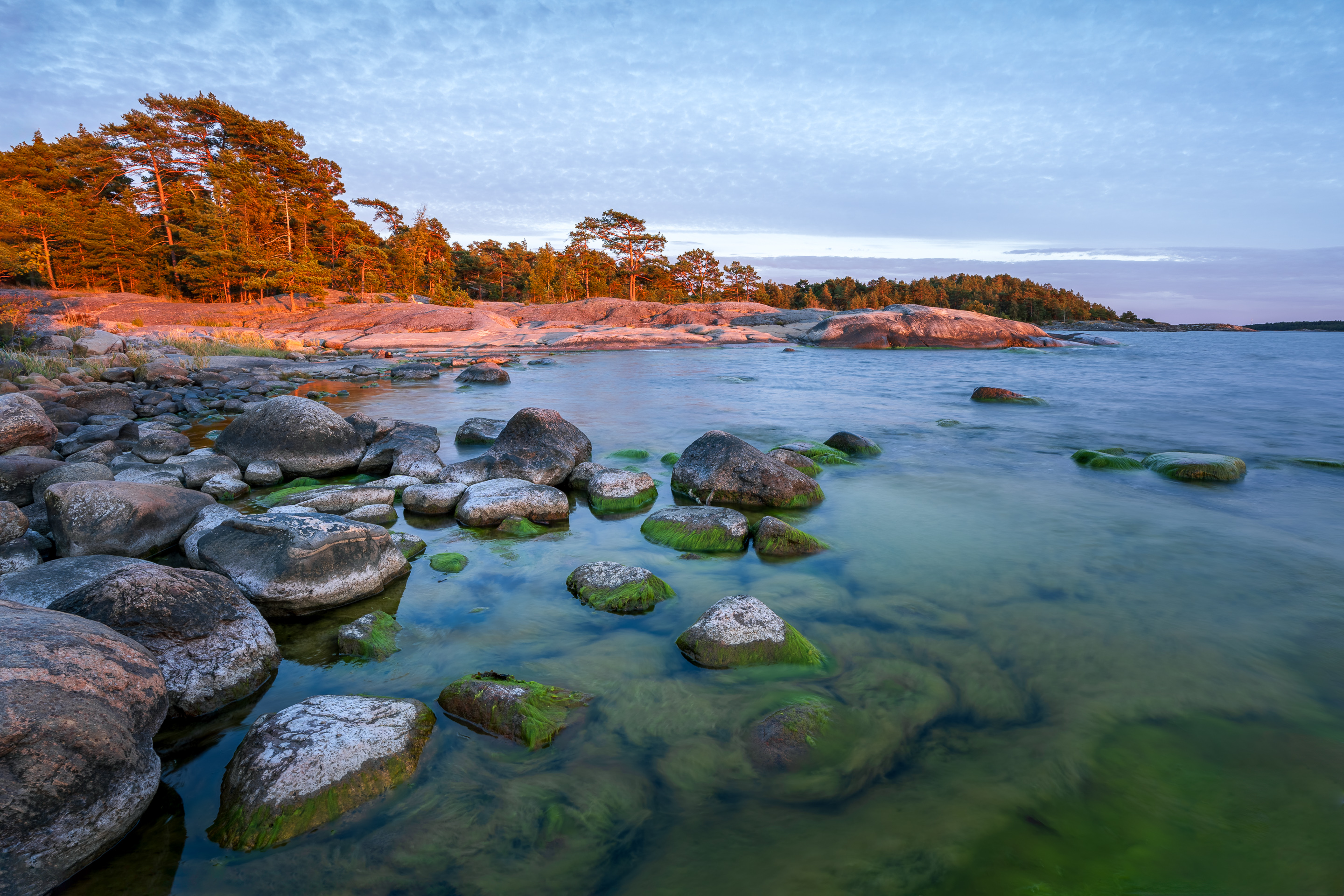On the banks of Porkkala, water collects here and there in shallow rocky gullies and pools. These natural pools are a real treat for photographers, as their calm surfaces act like mirrors, in contrast to the restless sea. Just find one with an open view into the distance and wait for the landscape to calm down after sunset and immerse itself in muted shades of purple.